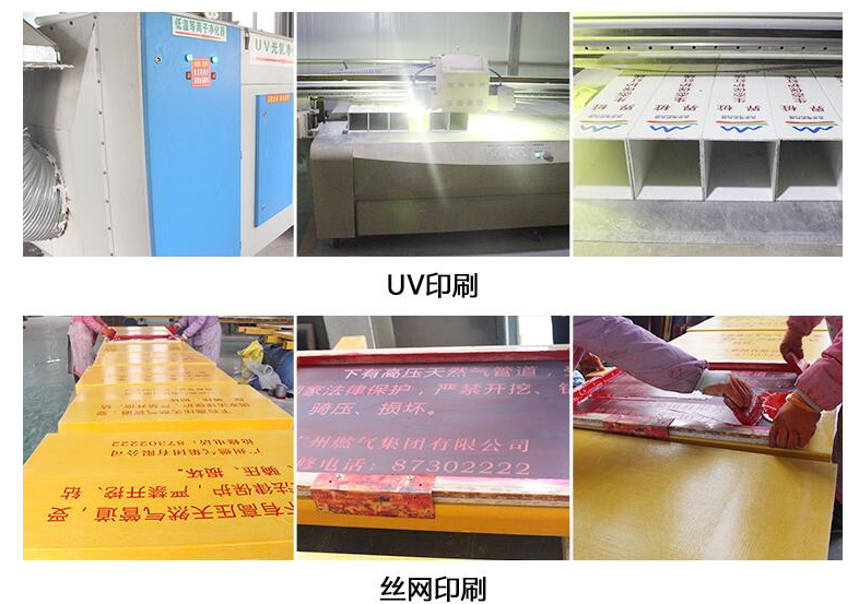 玻璃鋼標志樁的印刷分為3種,包含絲網印刷、UV打印和雕刻等三種方式,一般固定版使用絲網印刷或UV印刷,非固定版采用UV打印和雕刻。如果樁體LOGO有漸變色要使用UV打印。如下圖